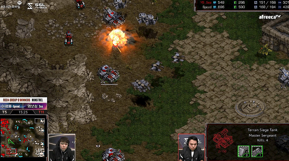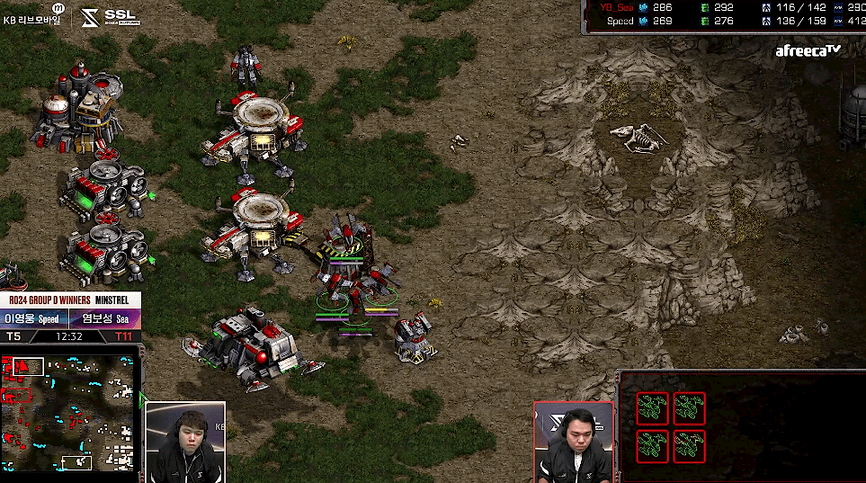 반면에 테란은 메카닉 병력의 업그레이드를 진행하면서 벌처견제를 통해 프로토스의 멀티를 지연시키고 멀티의 일꾼들을 잡아내주며 상황을 테란 쪽으로 천천히 가지고 옴