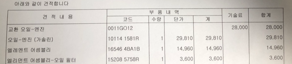 차량을 운행하면서 매번 공식서비스센터를 이용했는데 이렇게 비용의 차이가 있는지 몰랐습니다.
